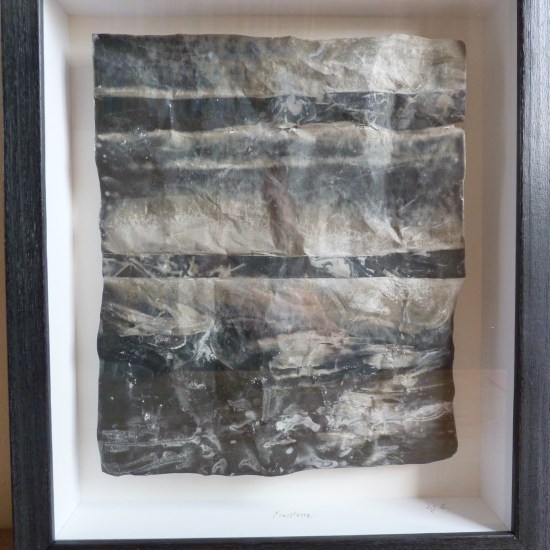 Framed works ‘The café au lait Series:1’ – Text, archival ink, ceramic shards ‘The White series:1’ – Text, archival ink, stones ‘The Hospital Green Series’ – Text, archival ink and semi-precious stones ‘Finistère’ – mixed media Like Loading...